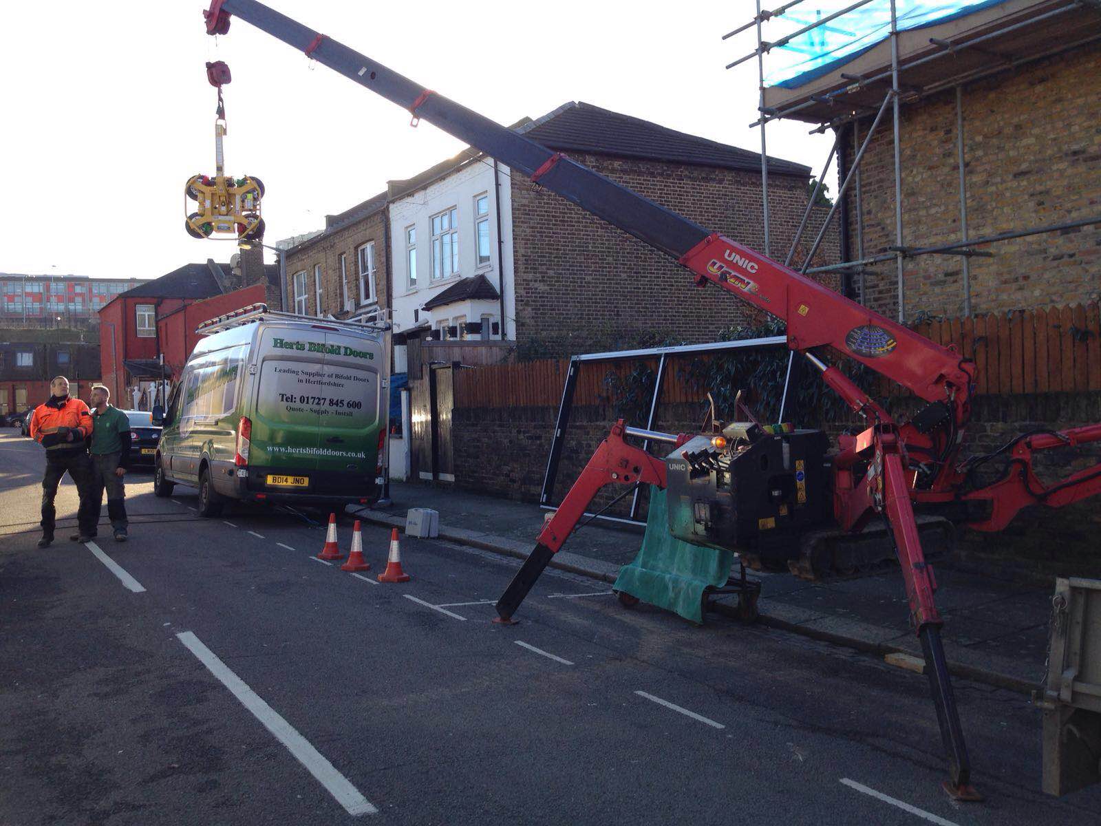 aïr Accredited Retailer Herts Bifold Doors, leading supplier of bi-fold doors in Hertfordshire, was given the complicated job of getting the 2M square, 300KG doors up two storeys to be fitted.
